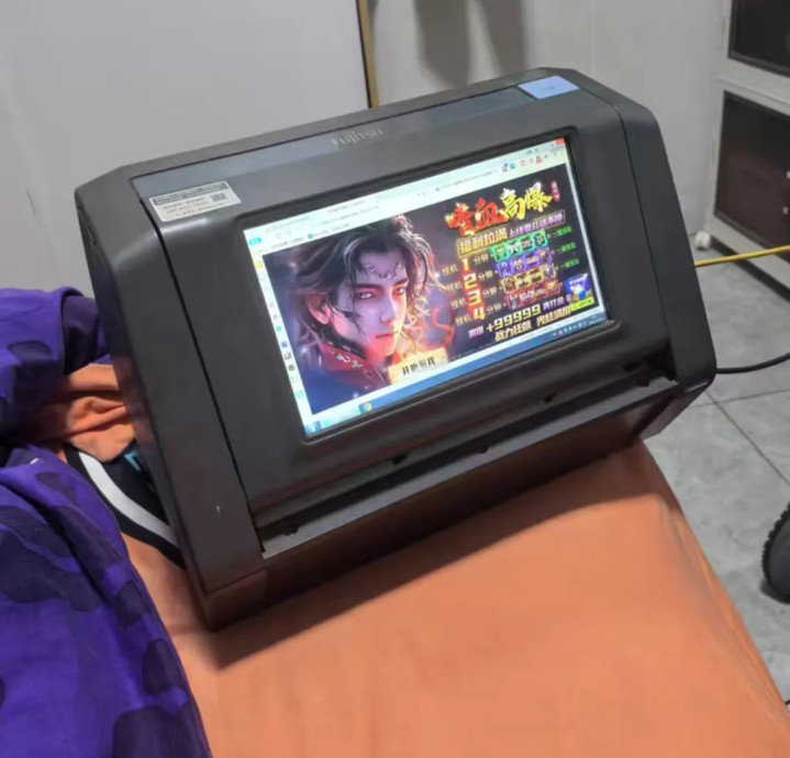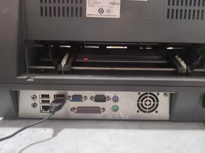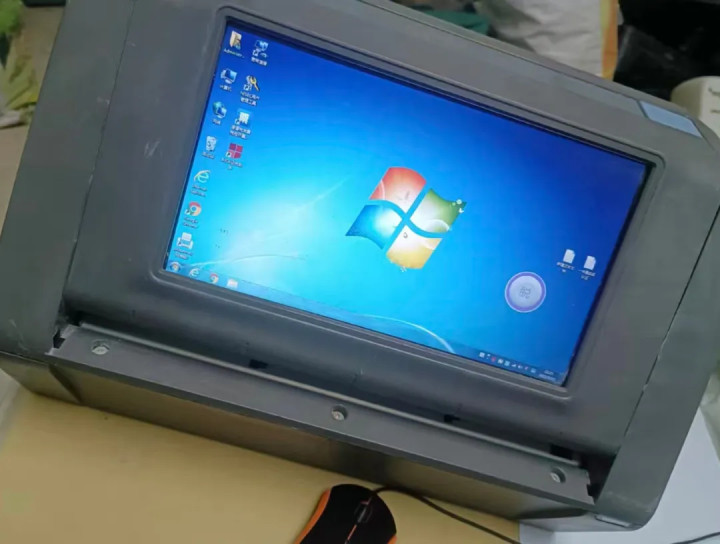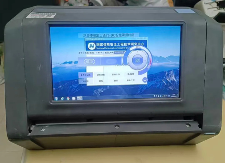 它叫富士通PT100H智能票据终端,当年采购价上万,是面向政企用户推出的商用机。它正面采用了一块8英寸左右的宽屏,里面运行Windows7系统,其实是一台电脑一体机。