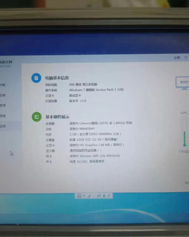 它的配置不高,搭载了英特尔赛扬1037U双核处理器,主频是1.8GHz,内存是金士顿DDR3 2GB,硬盘是前景32GB固态。